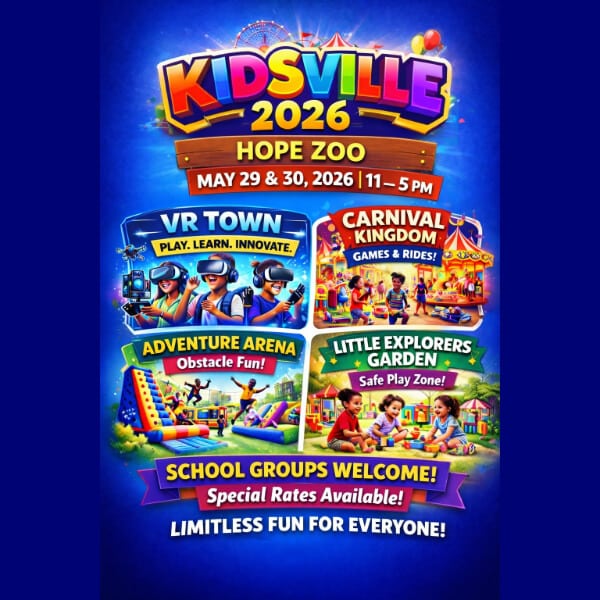 Get ready for the ultimate family adventure at Kidsville 2026! Happening May 29 & 30 at Hope Zoo from 11 AM to 5 PM, this exciting event is packed with fun for kids of all ages. Explore the futuristic VR Town, enjoy thrilling rides in Carnival Kingdom, tackle obstacle challenges in the Adventure Arena, and let little ones play safely in the Little Explorers Garden. Perfect for families, schools, and groups, with special rates available. It’s a vibrant mix of play, learning, and unforgettable memories. Don’t miss out—come experience limitless fun, laughter, and excitement all in one amazing place!